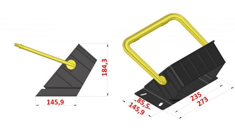 Držák pro homologovaný klín DIN 76051/E53 s nosností 6500 kg.