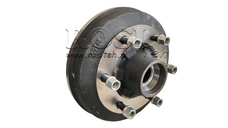 Tambor de freno de reemplazo con tornillos, rodamientos para ambos lados del tambor y goma protectora para el rodamiento interno. Adecuado para ejes de nuestra oferta con una longitud de 1500mm.