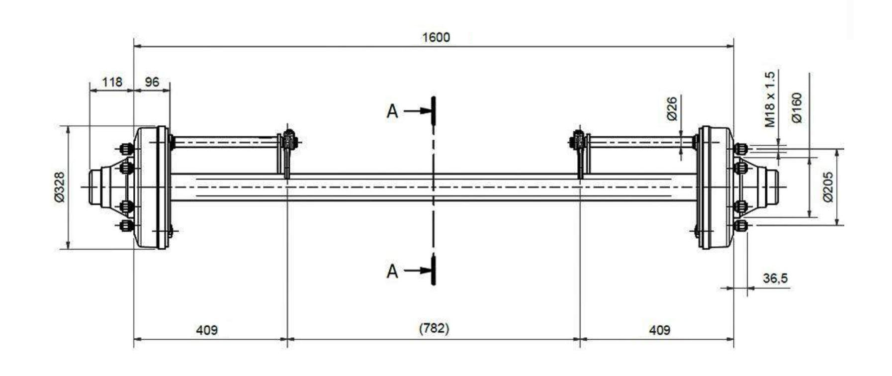 El eje de remolque con freno está diseñado para un uso seguro y fiable bajo cargas más elevadas (capacidad de carga hasta 7200 kg). El sistema de frenado integrado asegura una frenada efectiva, mientras que el ancho de 1600 mm proporciona una mayor estabilidad de conducción, especialmente al transportar cargas más pesadas y cuando se utiliza en vías públicas.