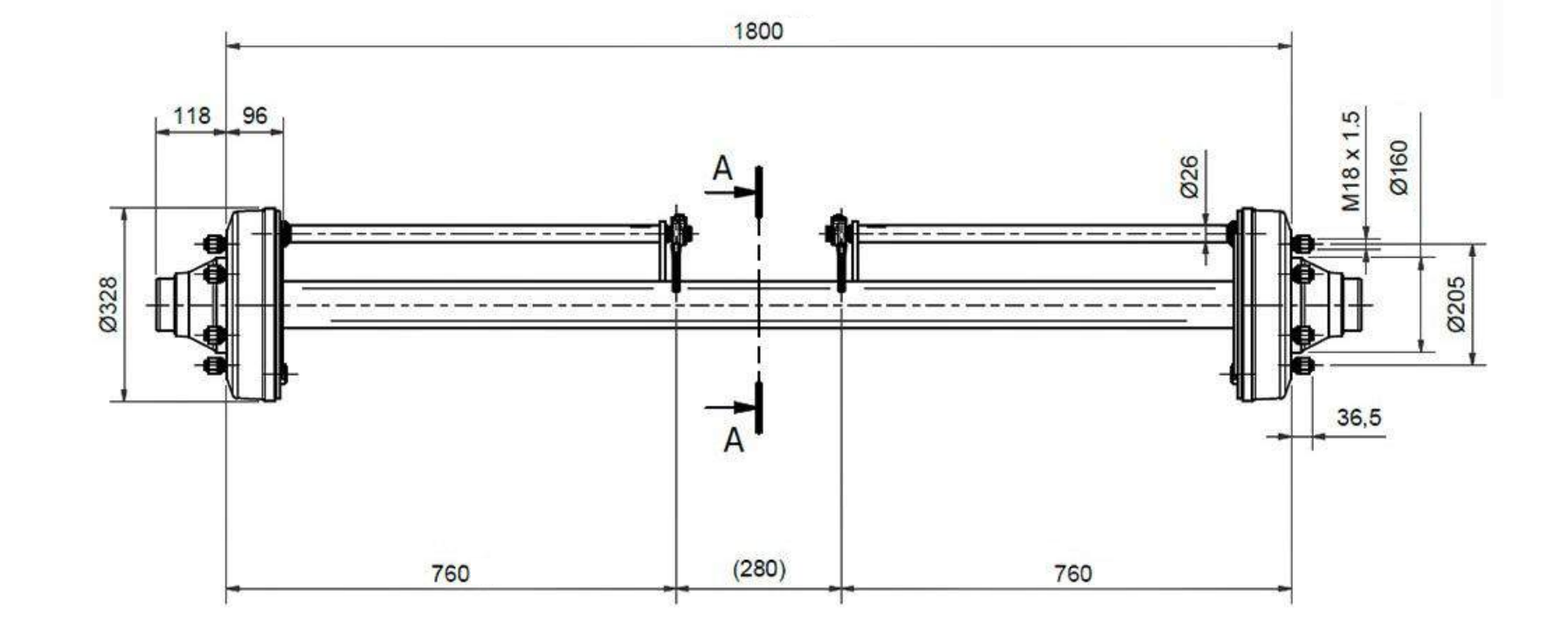 El eje de remolque con freno está diseñado para un uso seguro y confiable bajo cargas más altas (capacidad de carga hasta 7200 kg). El sistema de frenado integrado garantiza un frenado efectivo, mientras que el ancho de 1800 mm proporciona mayor estabilidad al conducir, especialmente al transportar cargas más pesadas y cuando se utiliza en vías públicas.