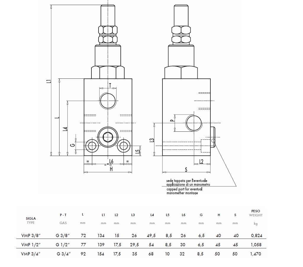 REGULADOR DE PRESIÓN HIDRÁULICA VMP 3/4 20-260 BAR - 80LIT