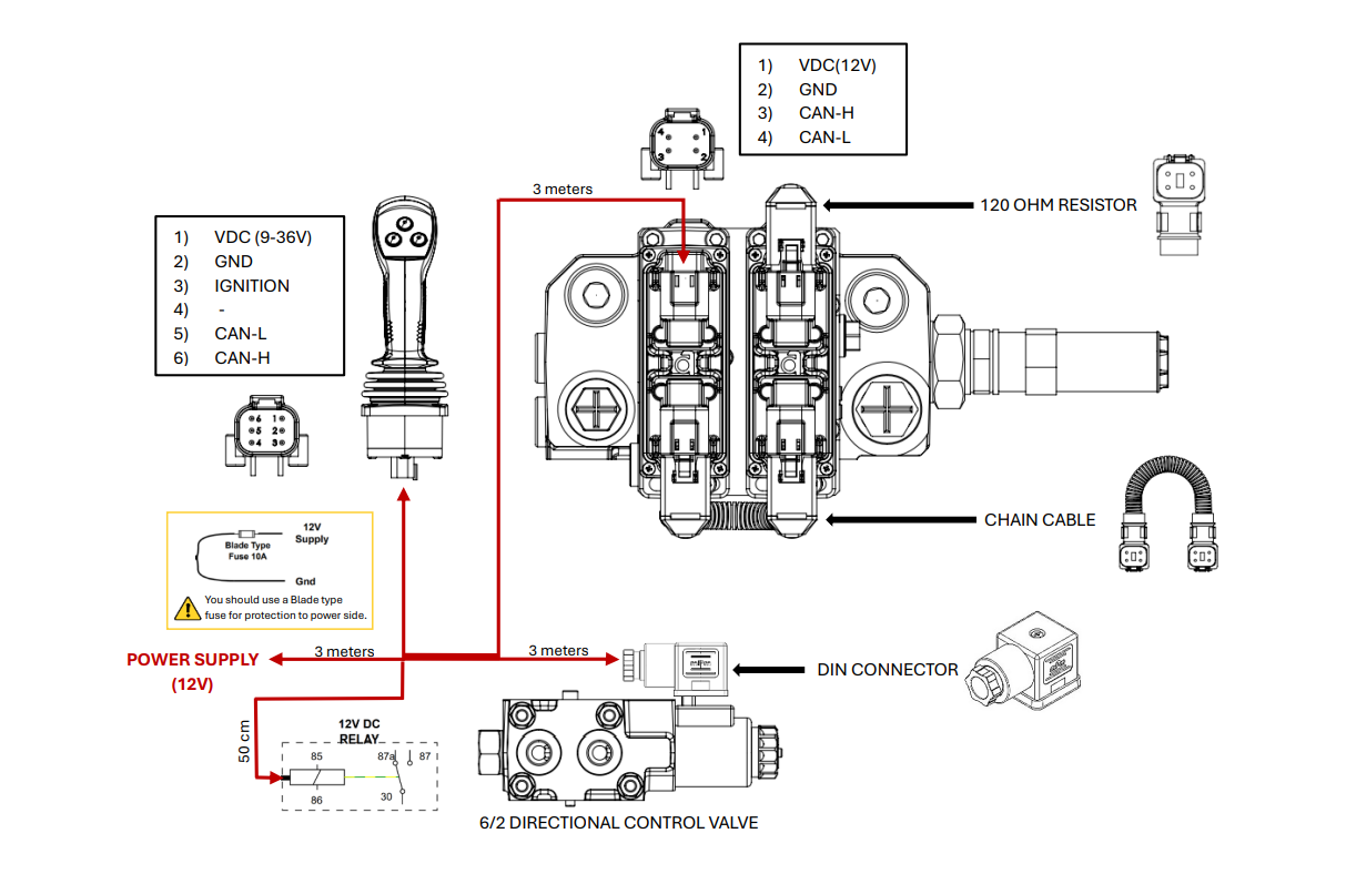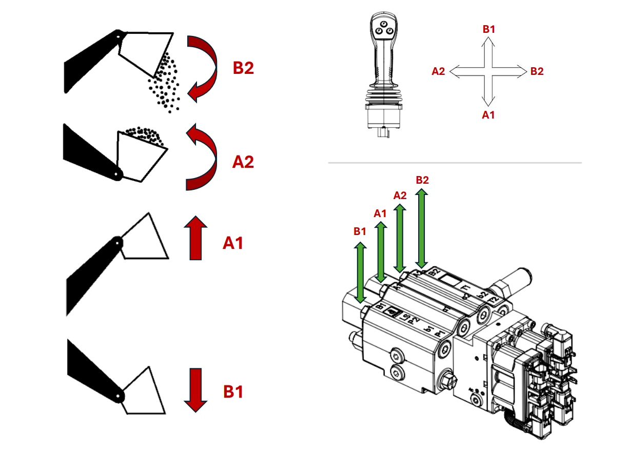 Sada obsahuje ventil, proporcionální řízení joystickem a elektrické kabeláže.