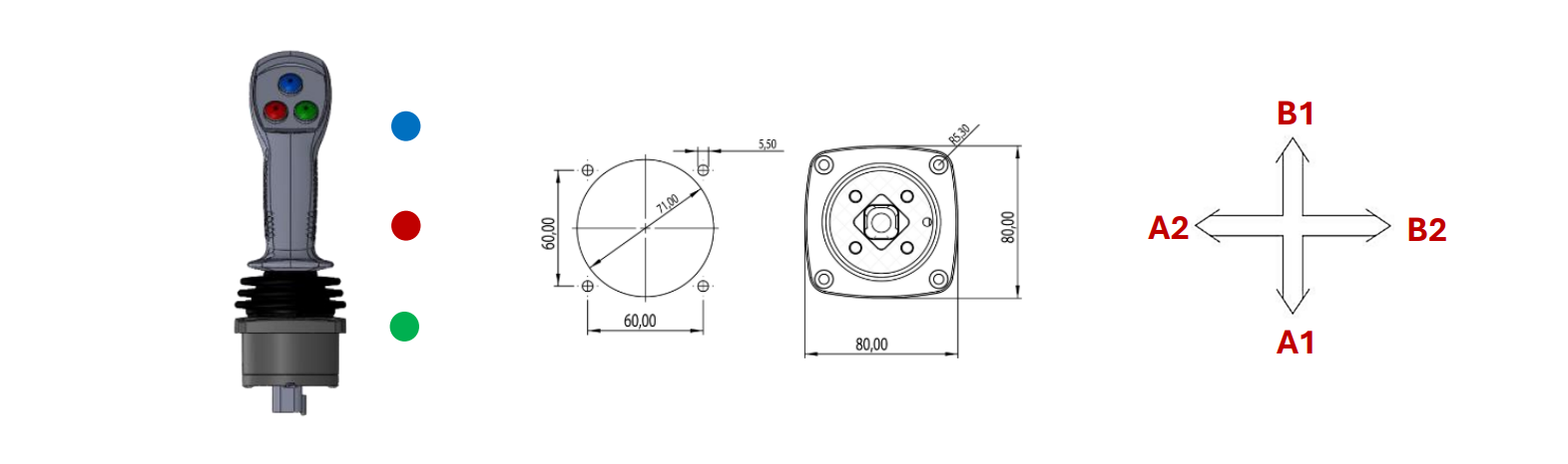 - MODRÉ tlačítko: směrový ventil 6/2 (tlačítko s okamžitým účinkem)