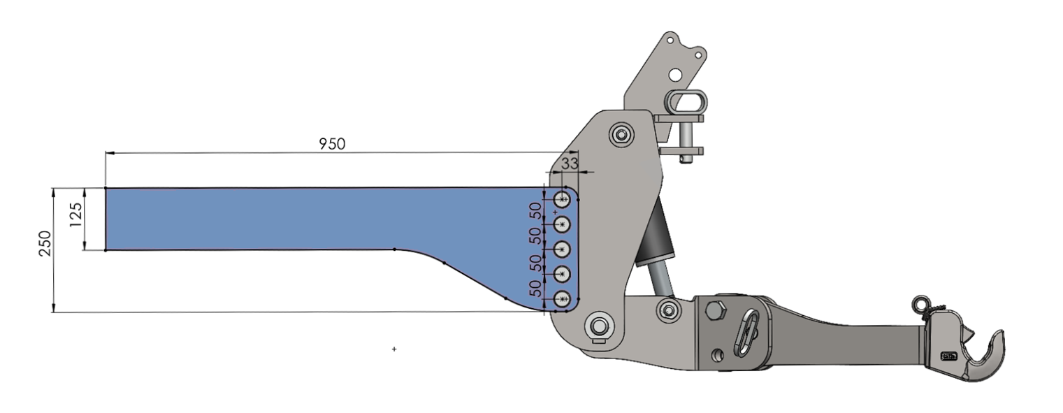 Platňa dlhá 950 mm môže byť skracovaná na požadovanú dĺžku a montážne otvory sú vyvŕtané podľa traktora.