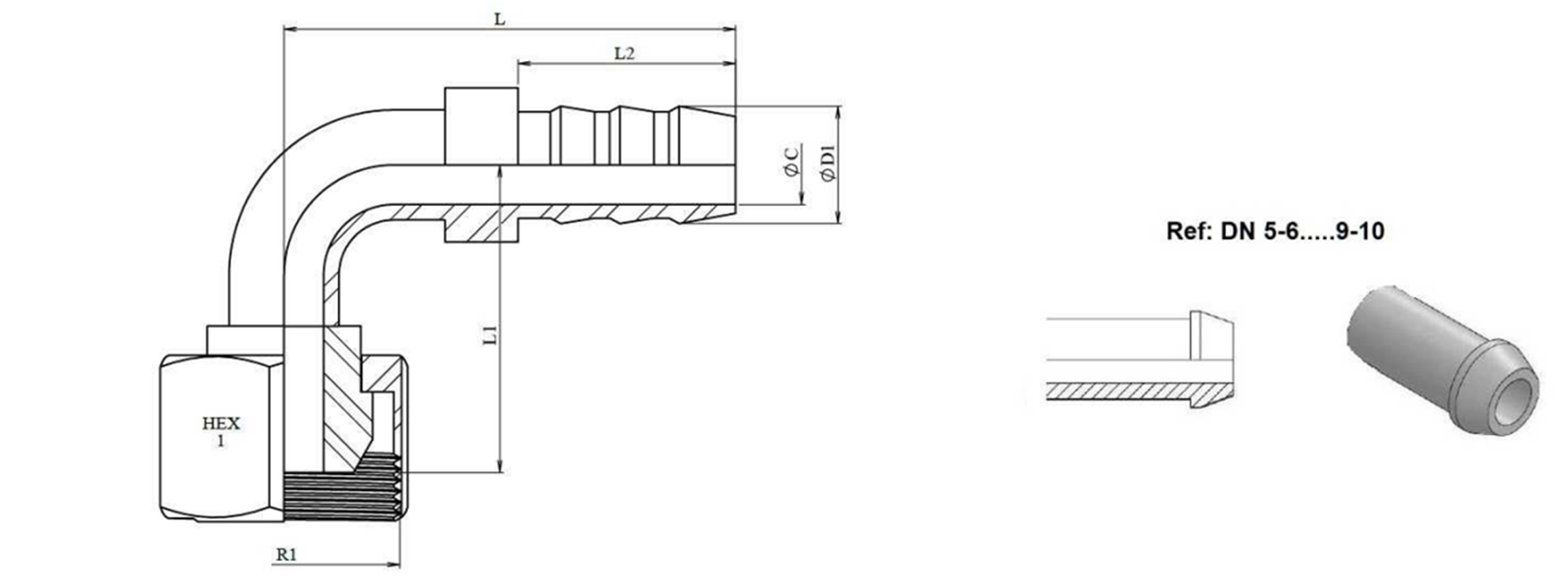 HIDRAVLIČNI PRIKLJUČEK MOŠKI 2 ZA GUMI CEV FI 50